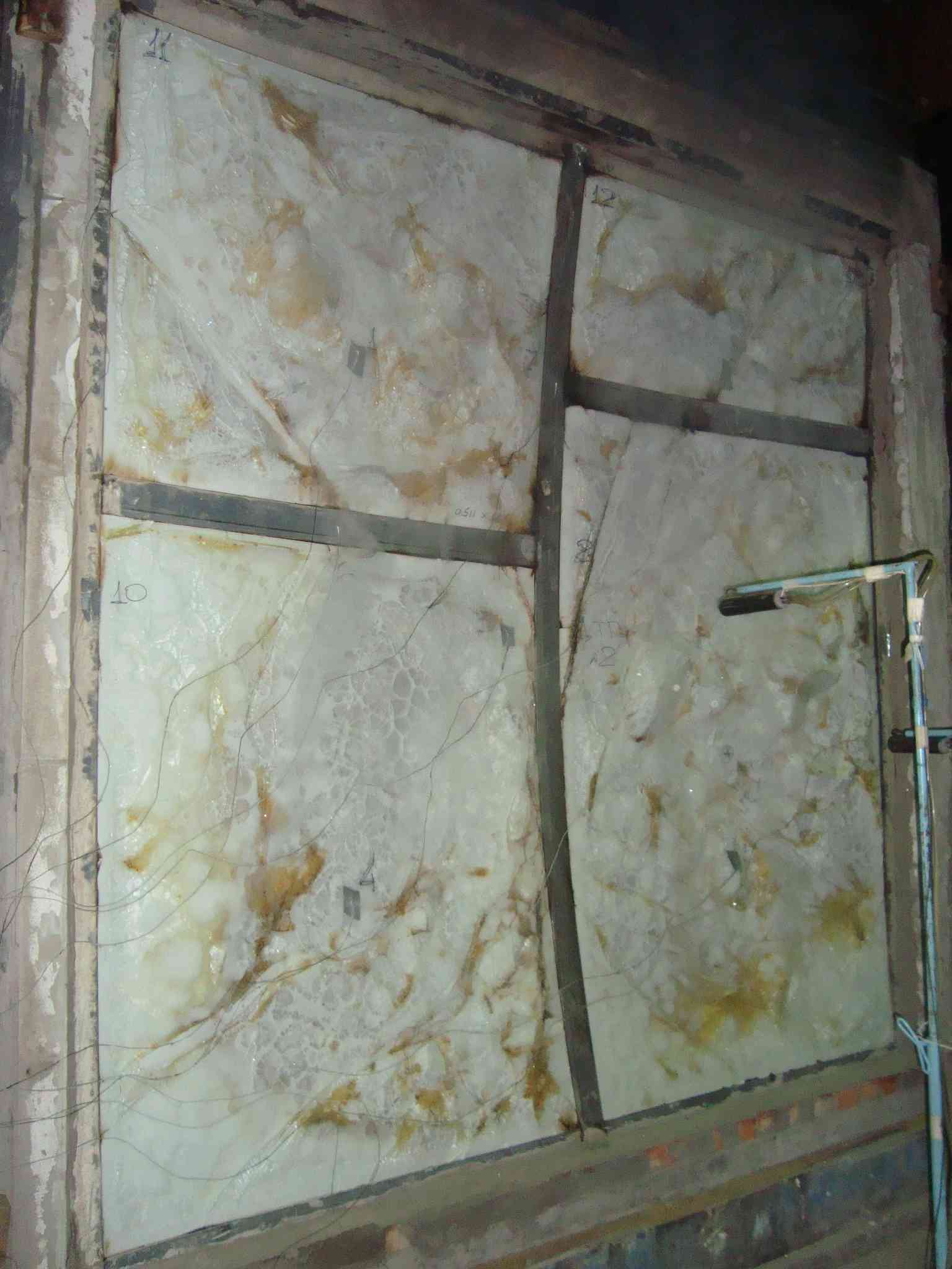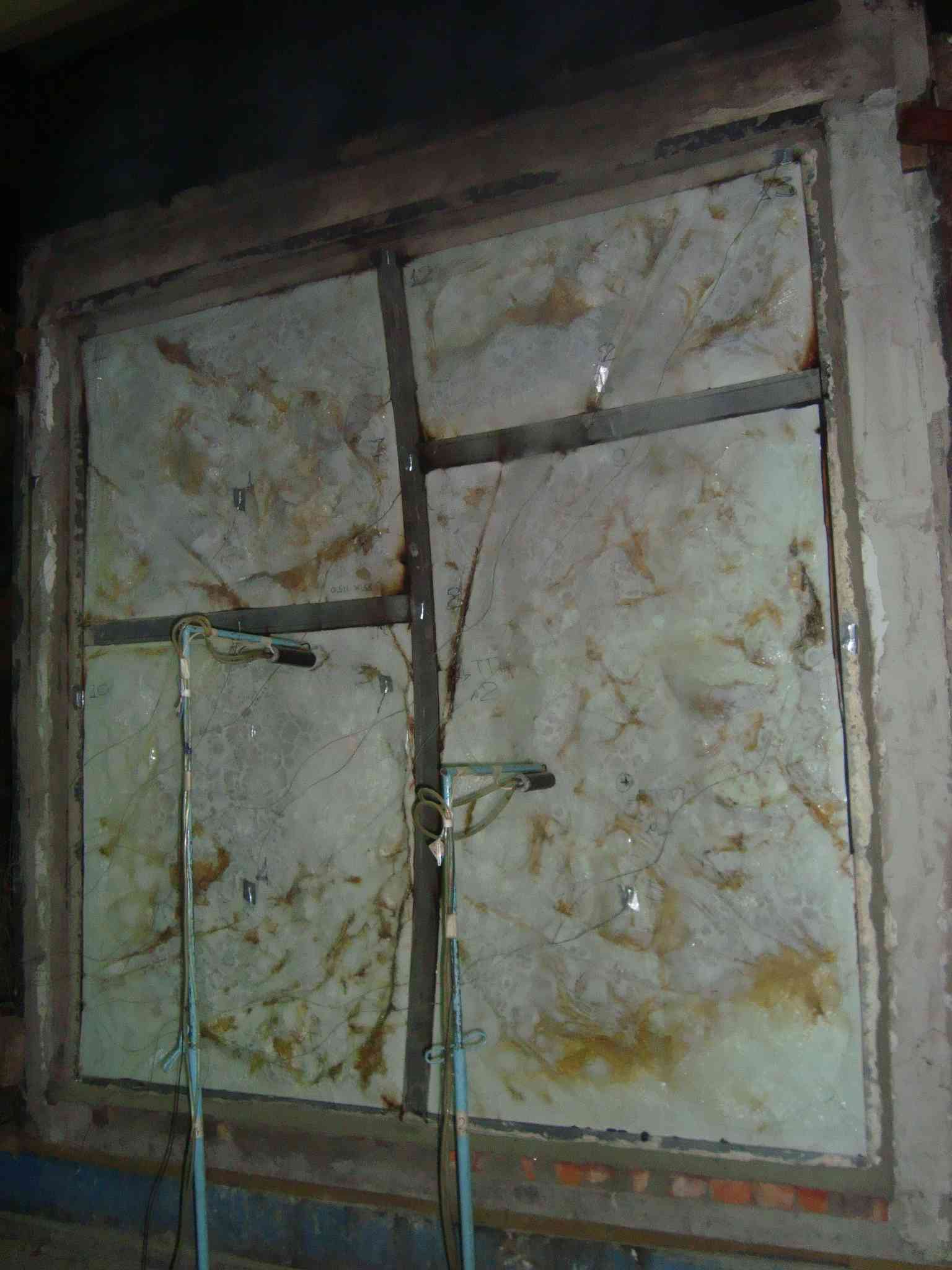В качестве светопрозрачного заполнения используется огнестойкое стекло марки Pyrobel , производства концерна A G C. Заполнение крепится с помощью прижимных элементов из нержавеющей стали с применением керамических прокладок между стеклом и металлом. Стекло при установке в конструкцию перегородки опирается на подкладки. Материал подкладок – дерево, пропитанное специальным огнестойким составом.